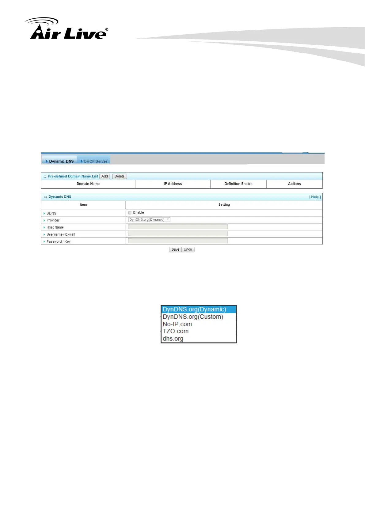 supports most popular 3-party DDNS service provider, including TZO.com, No-IP.com,