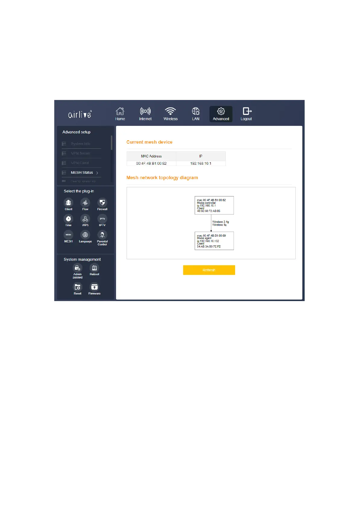 information. Also, the connection type of the MESH will be shown either via Wireless or