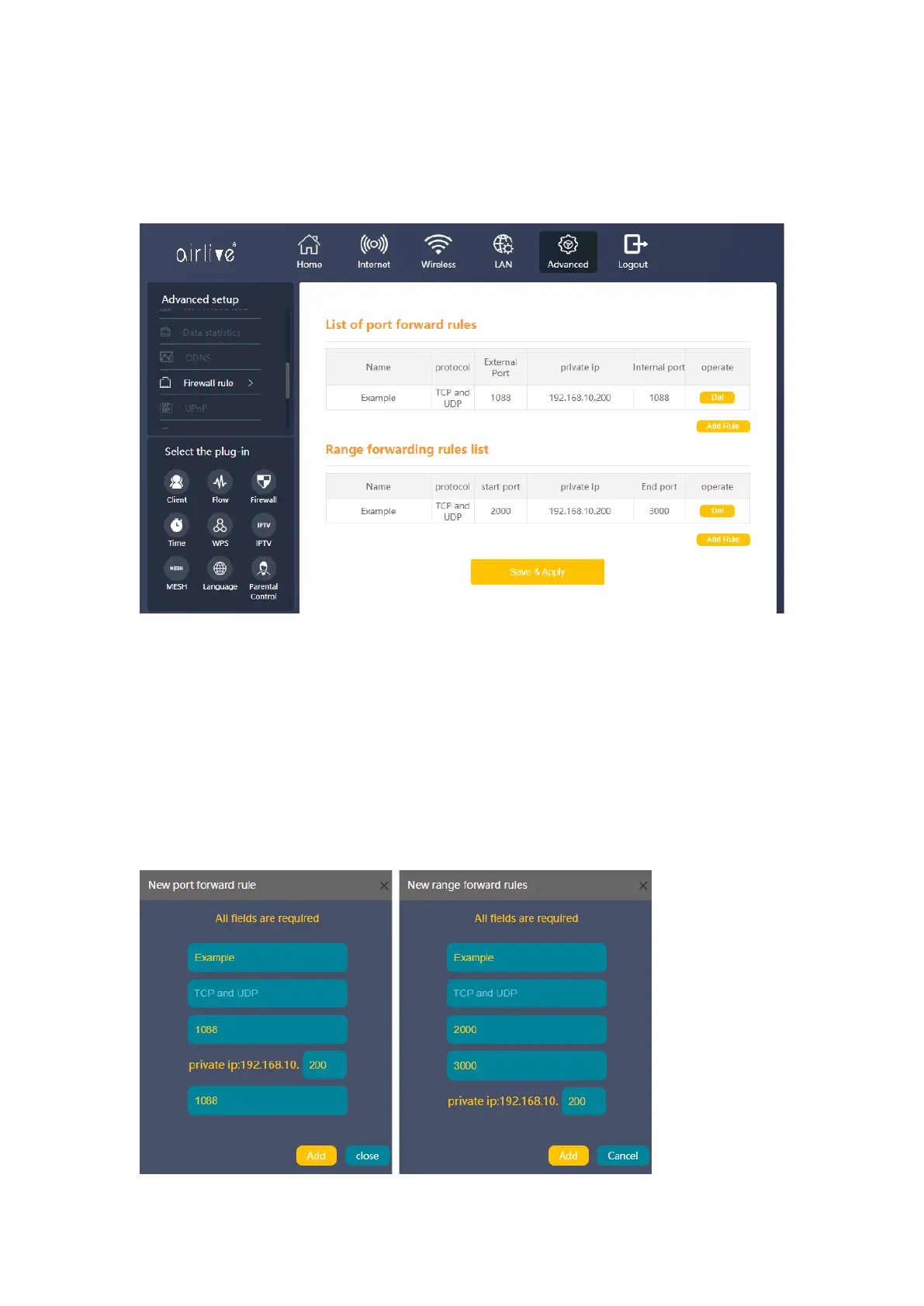 port. Click Add to add the rule after this click Save and Apply to active the rule.