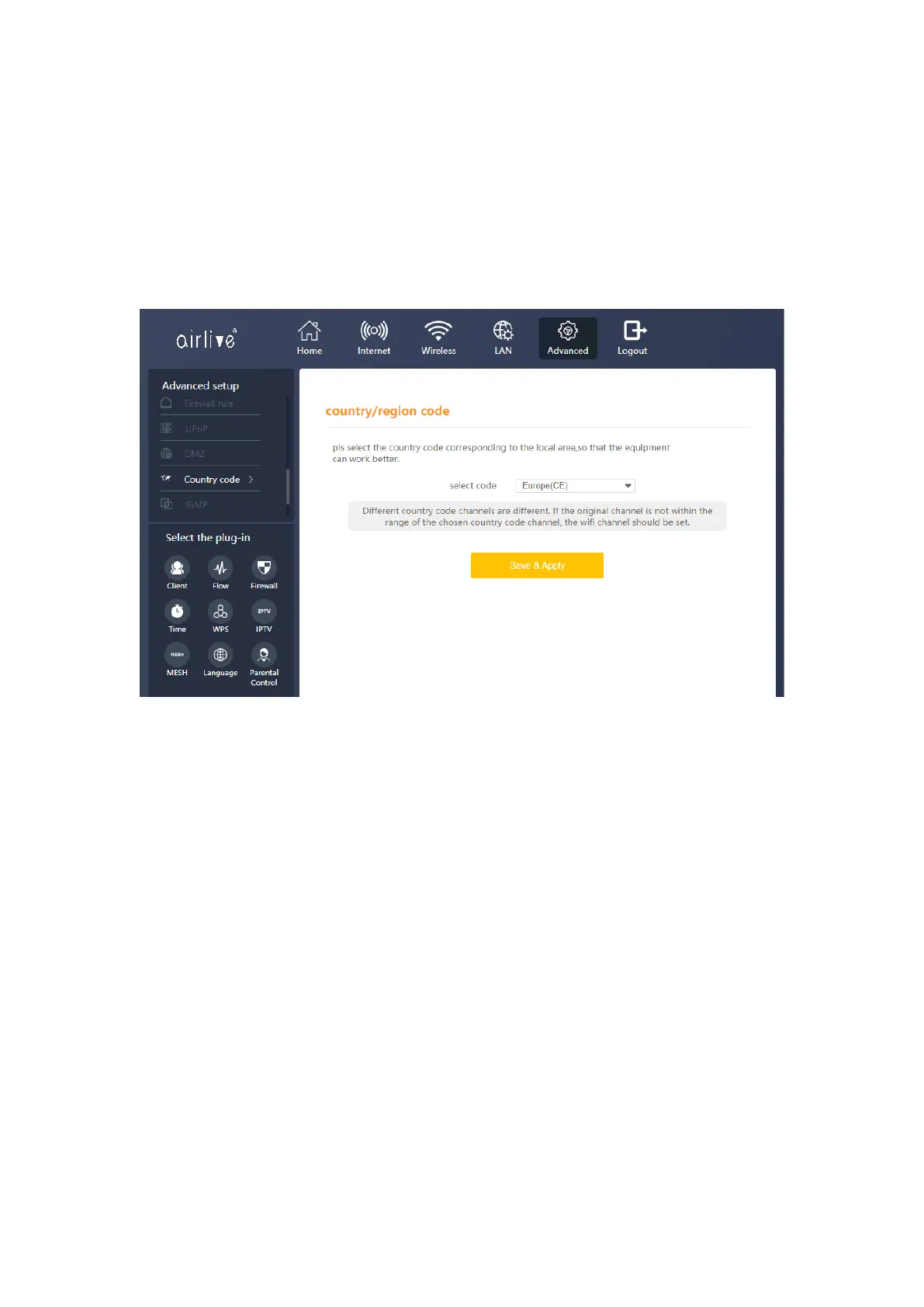If the original channel is not within the range of the chosen country code channel, the Wi-Fi