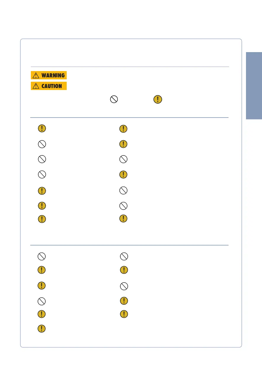 into <WARNING> and <CAUTION>. These are important for the safety, so please observe them without fail.