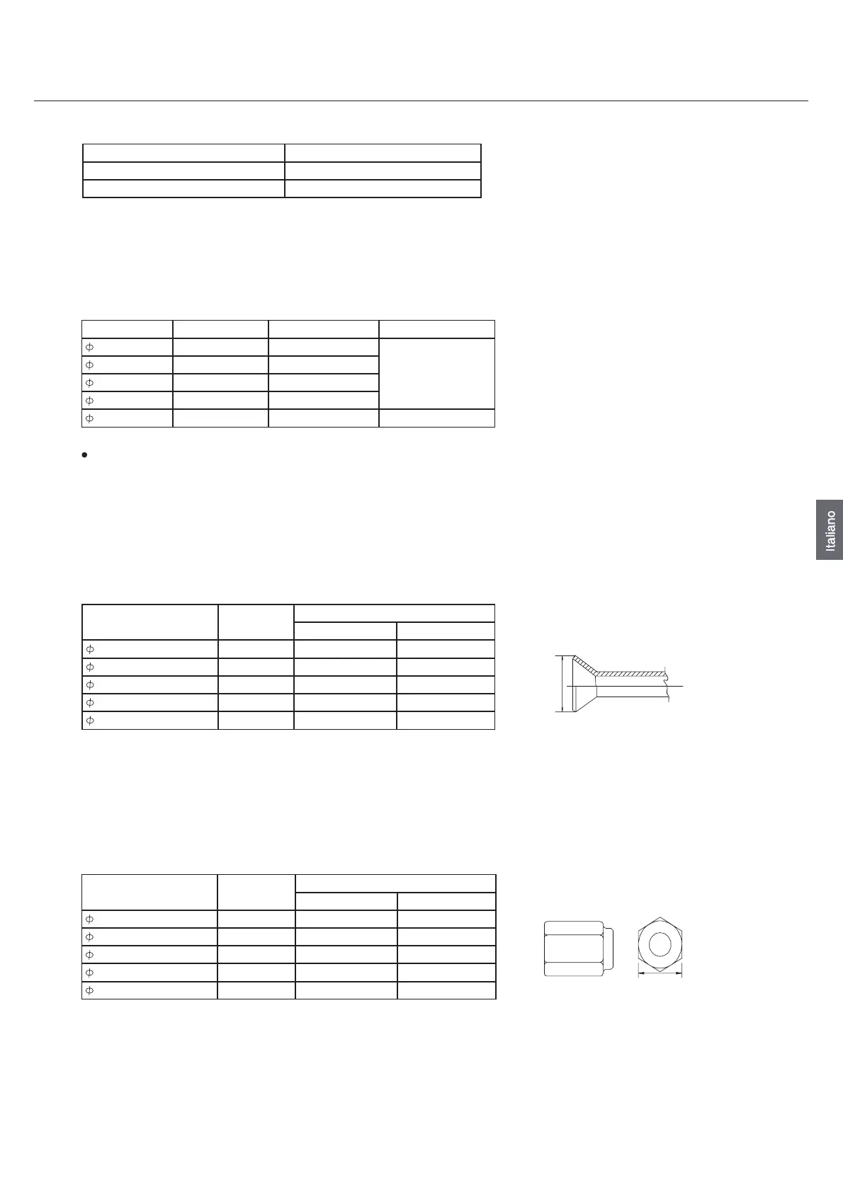 utilizzare tubature con lo spessore radiale specificato nella tabella sottostante: non usare tubature con uno spessore