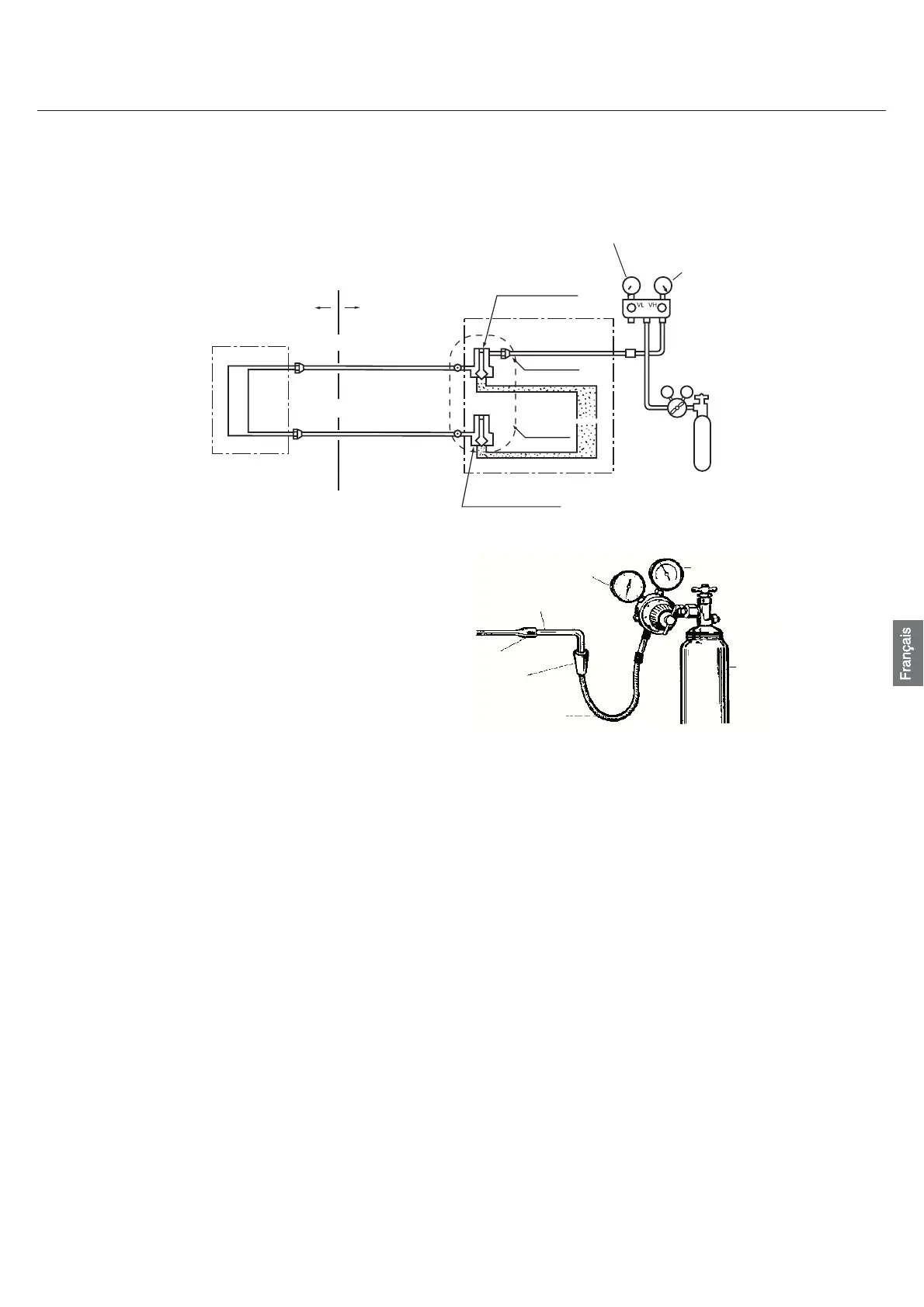 • Le clapet du gaz et du liquide sont tous les deux fermés. Pour éviter la pénétration de l'azote dans le système de circula-