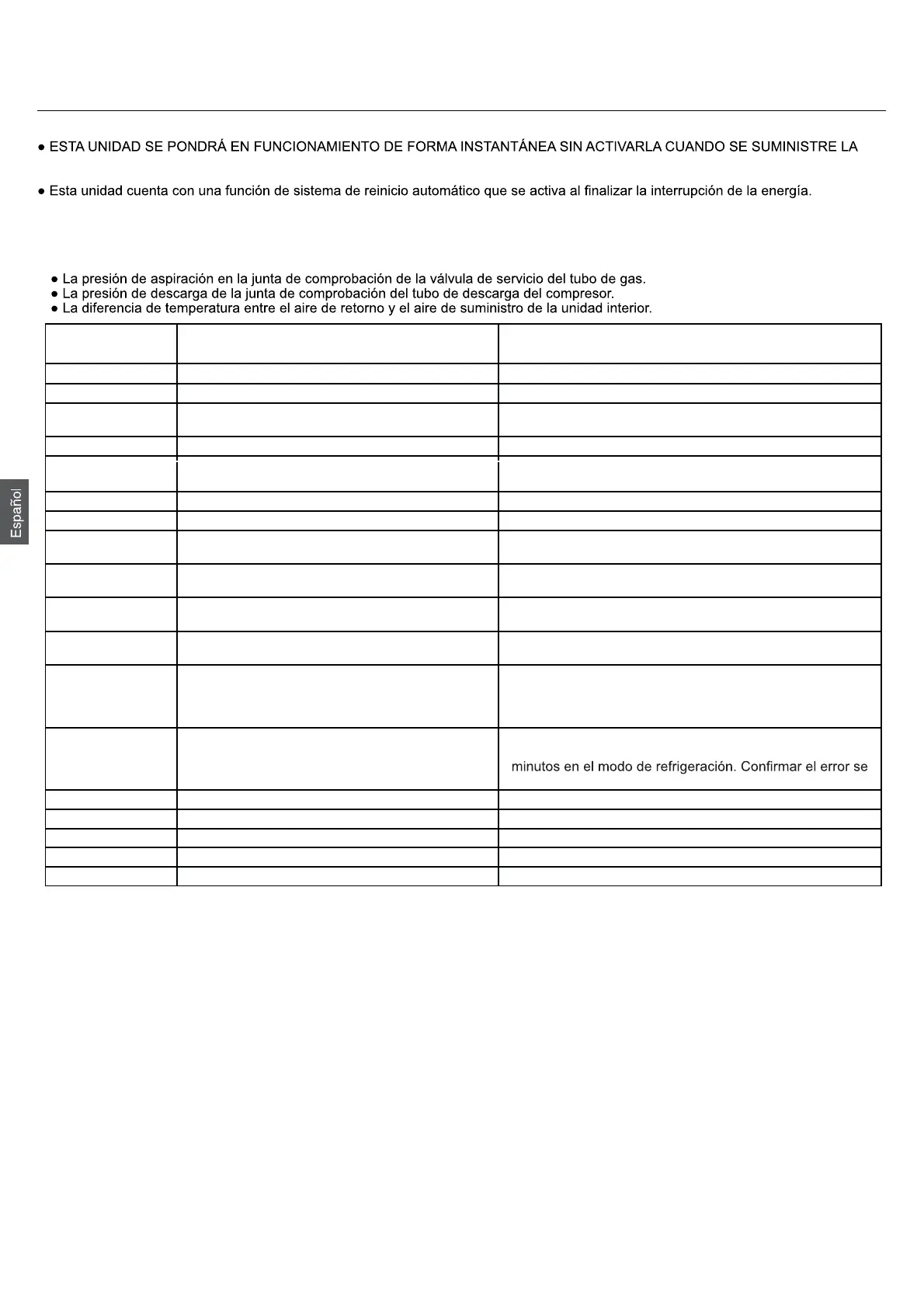 Ponga la unidad en funcionamiento de forma continua durante 30 minutos y compruebe lo siguiente.