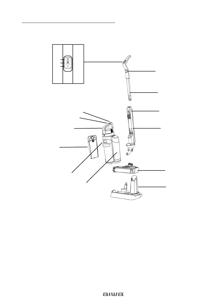 corpo E- Struttura di montaggio del corpo F- Spazzola per pavimenti G- Base di ricarica