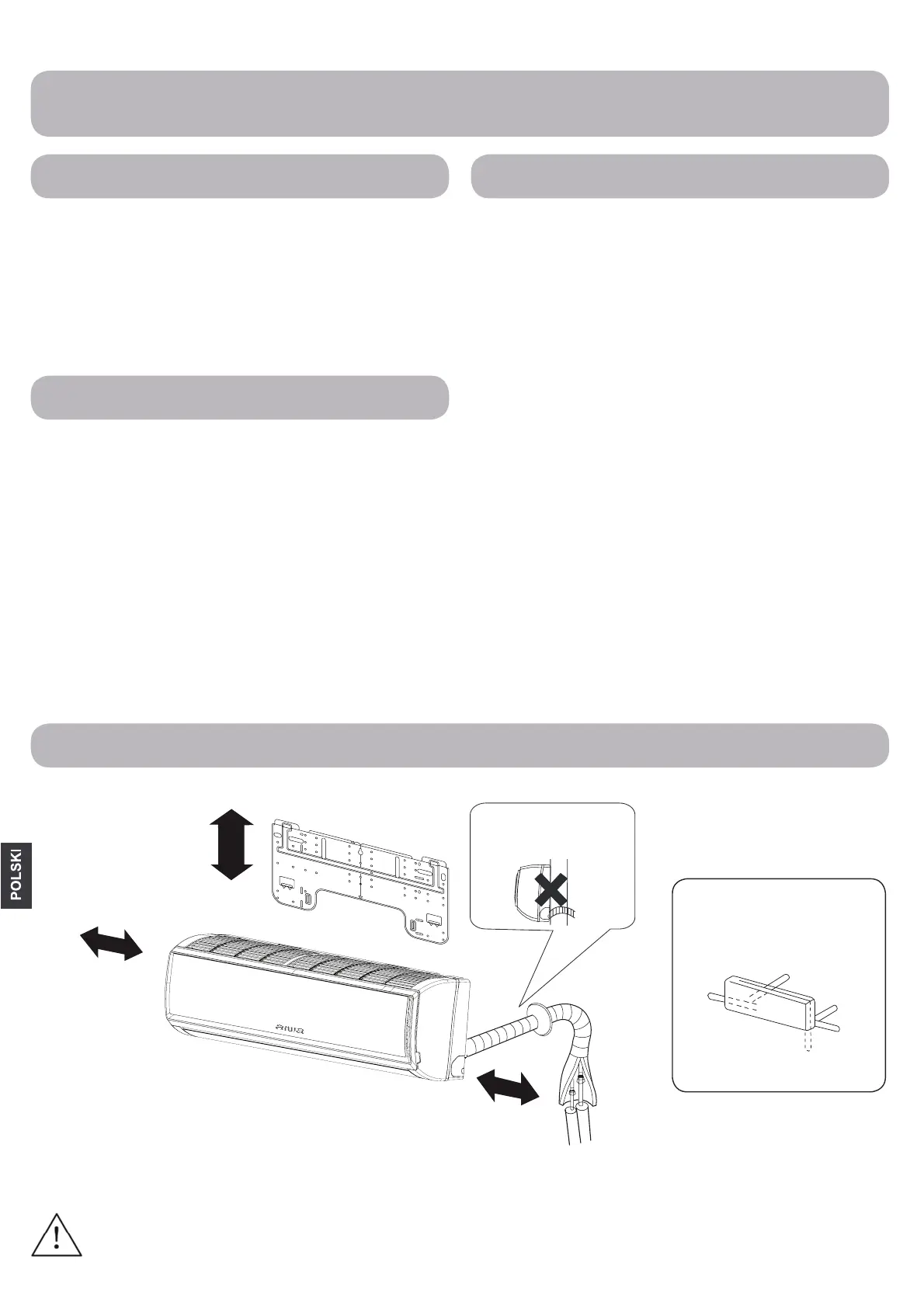 Odległość między urządzeniem wewnętrznym a podłogą powinna wynosić ponad 2 m.