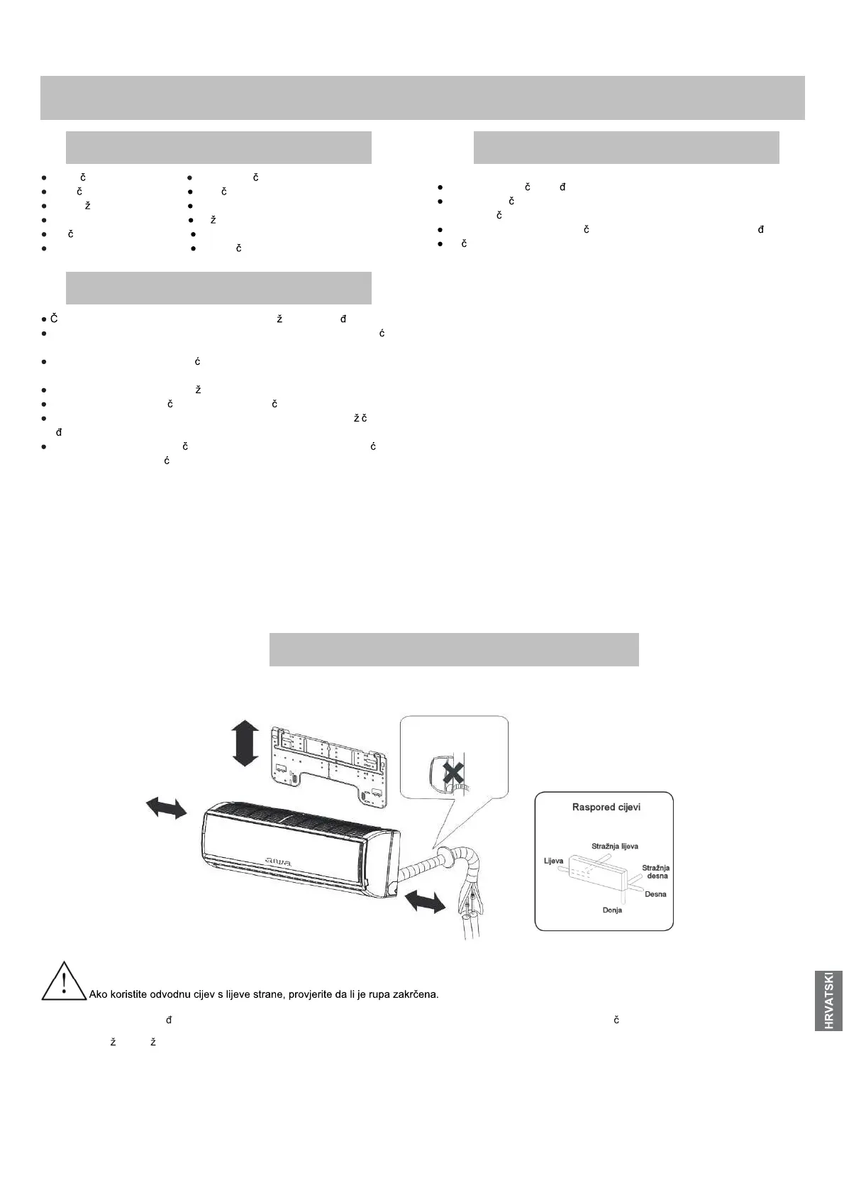 u unutarnje jedinice i poda treba biti više od 2m. Molimo promotrite stvarne dimenzije i zna ajke modela kojeg ste kupili.