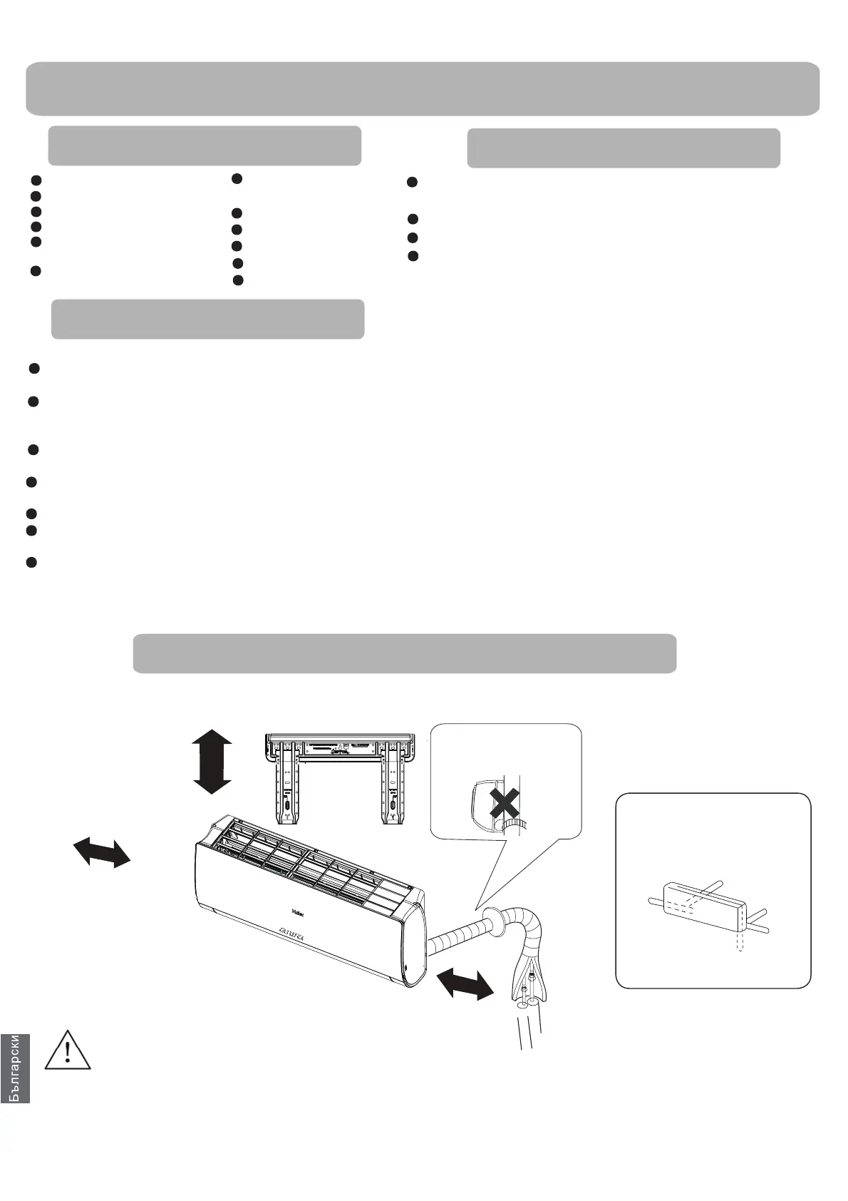 Разстоянието между вътрешното тяло и пода трябва да бъде повече от 2 м.