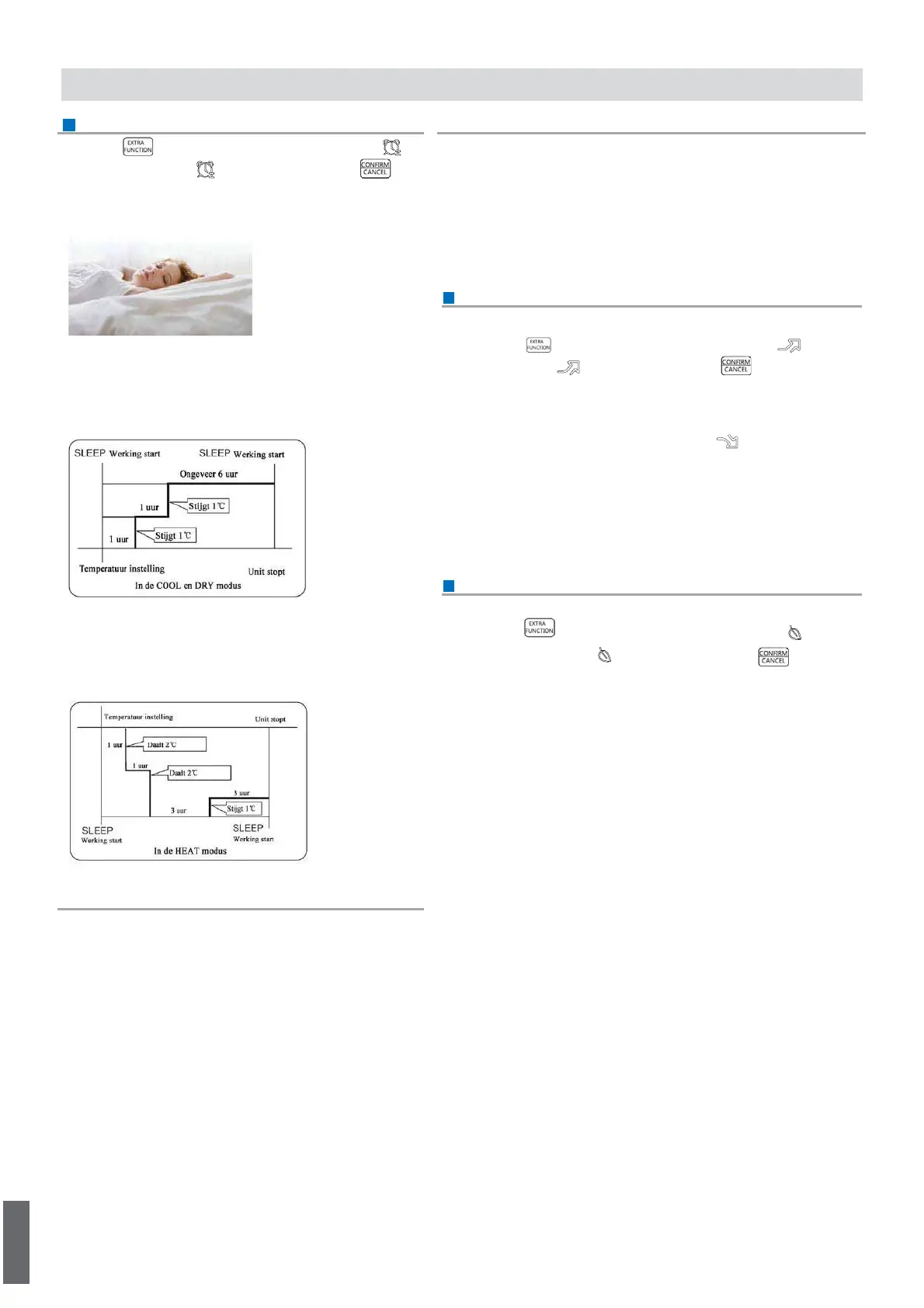 Een uur na het starten van de SLEEP modus zal de temperatuur 2°C