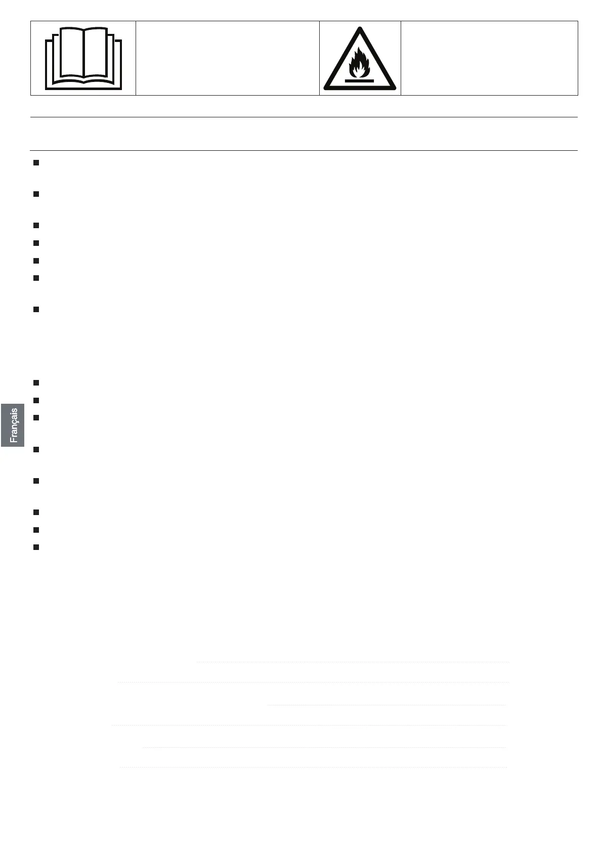 L'appareil doit être stocké dans une salle sans sources d'ignition fonctionnant en continu(par exemple: