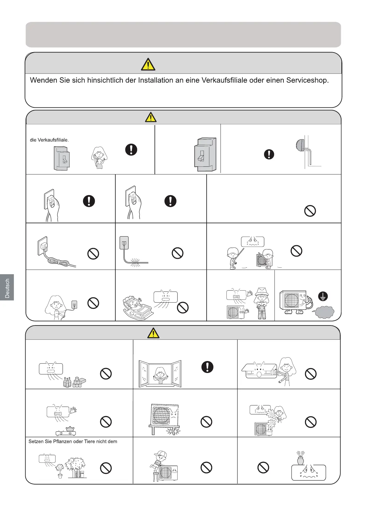 Versuchen Sie nicht, das Klimagerät selbst zu installieren, da eine unsachgemäße