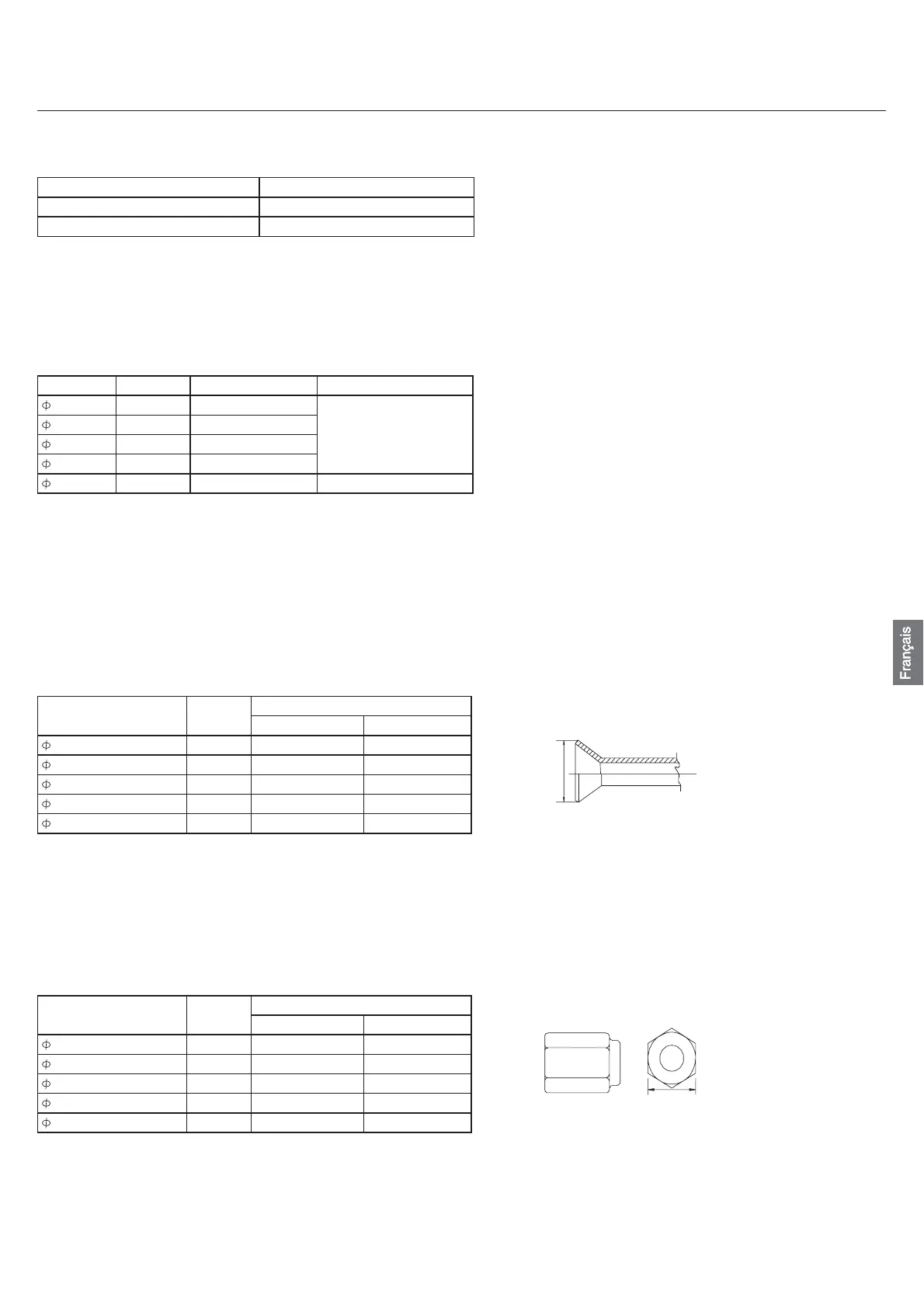 Les écrous d'évasement du type 2 sont utilisés, plutôt que les écrous du type 1, de façon à optimiser la résistance. La taille de certains