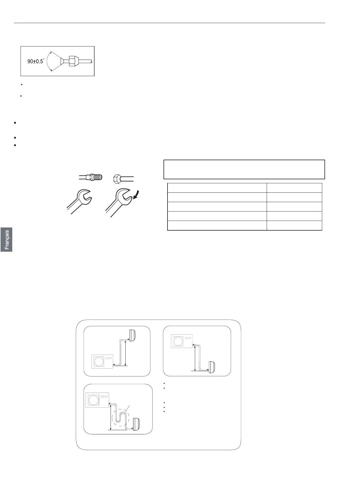 S'il faut rallonger le tuyau, le réfrigérant doit être chargé selon E g/m. Toutefois, la charge de réfrigérant doit être