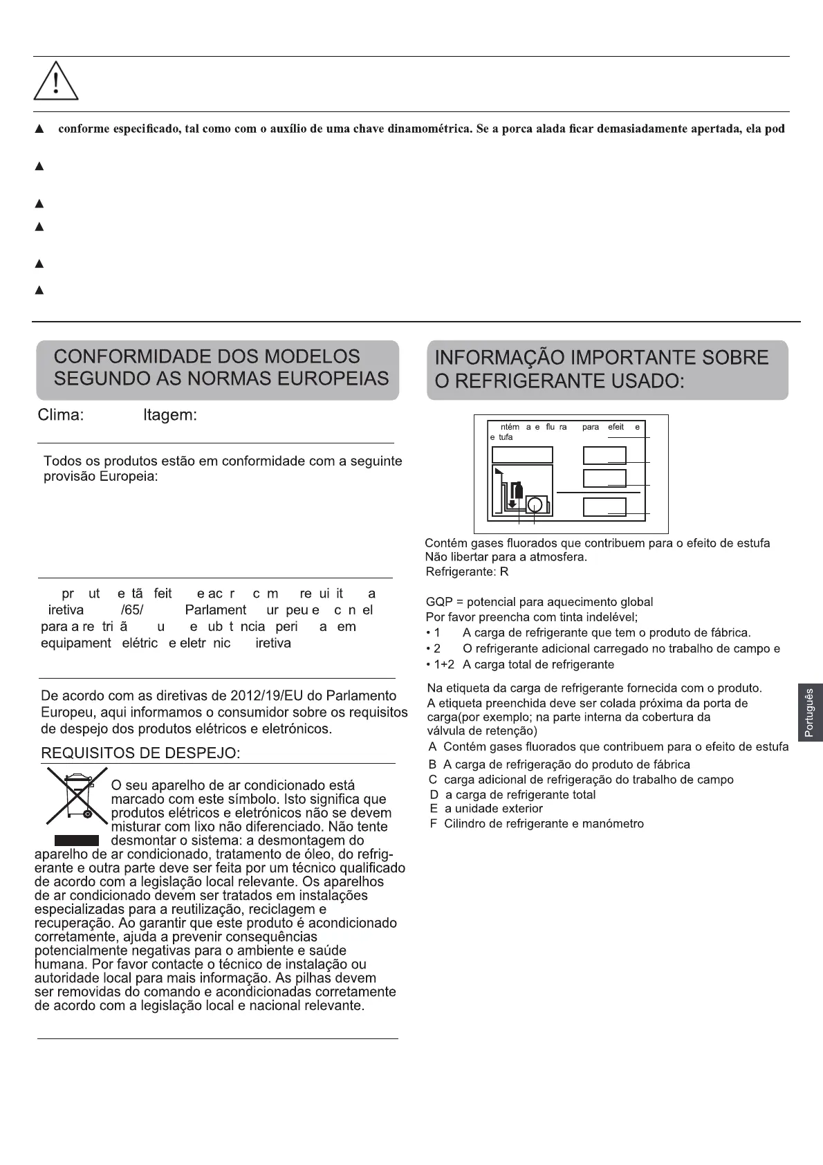 A temperatura do circuito de refrigeração pode ser muito alta. Por favor, mantenha o cabo de ligação entre unidades longe de tubos de