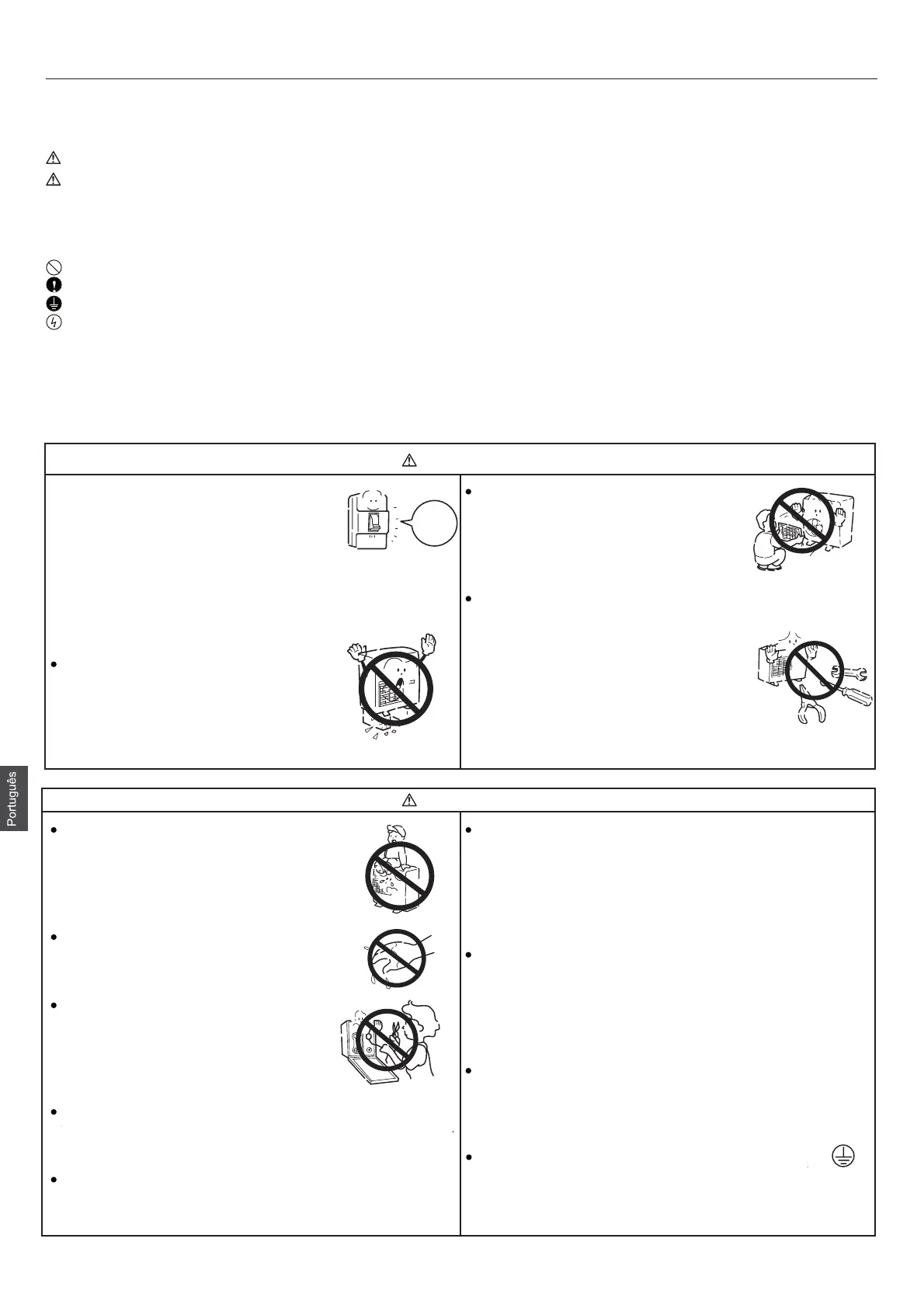 Cuidado com choque elétrico (Este símbolo é mostrado na etiqueta da unidade principal.)