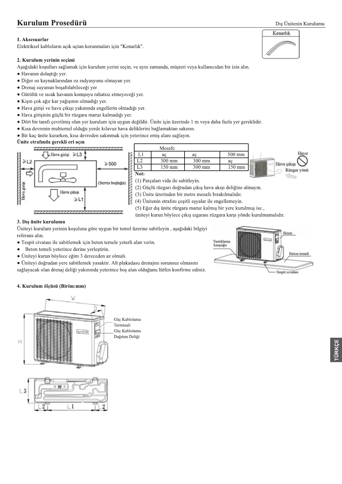 Kurulum boyutu değerleri tablo 3'te gösterilmiştir.