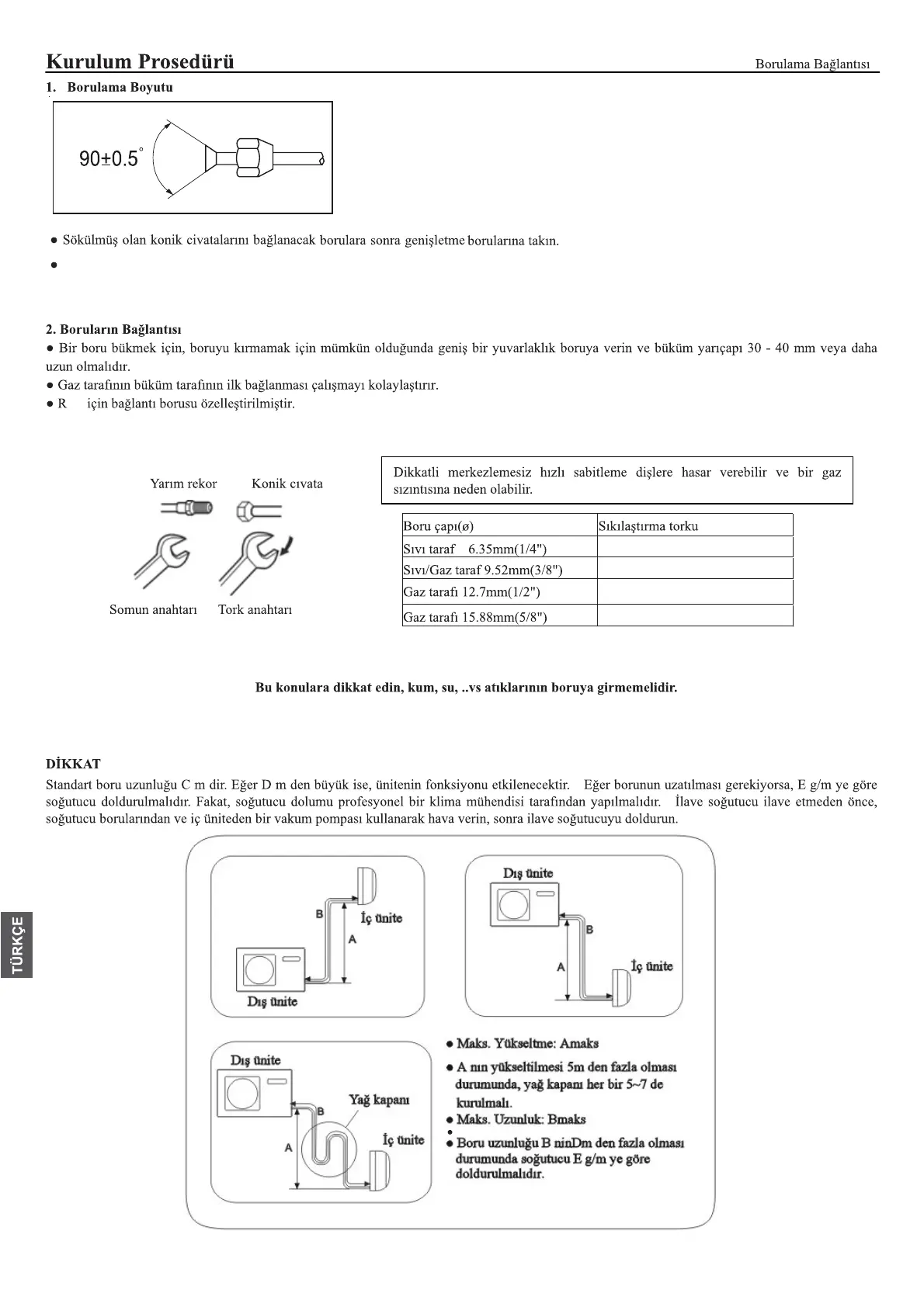 Boru boyutu değerleri tablo 4'te gösterilmiştir.