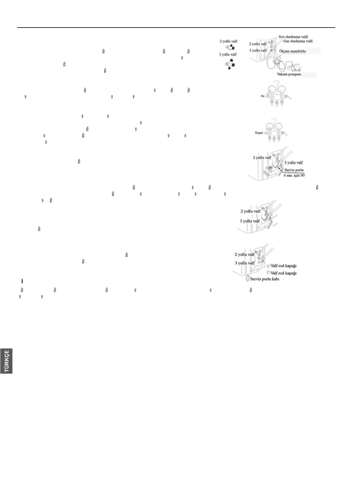 6. Dolum hortumunu servis portundan@ 2 yollu valf ve 3 yollu valften ay{r{n.