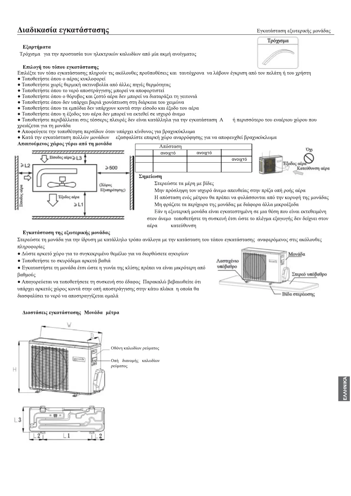 Οι τιμές της διάστασης εγκατάστασης φαίνονται στον πίνακα 3