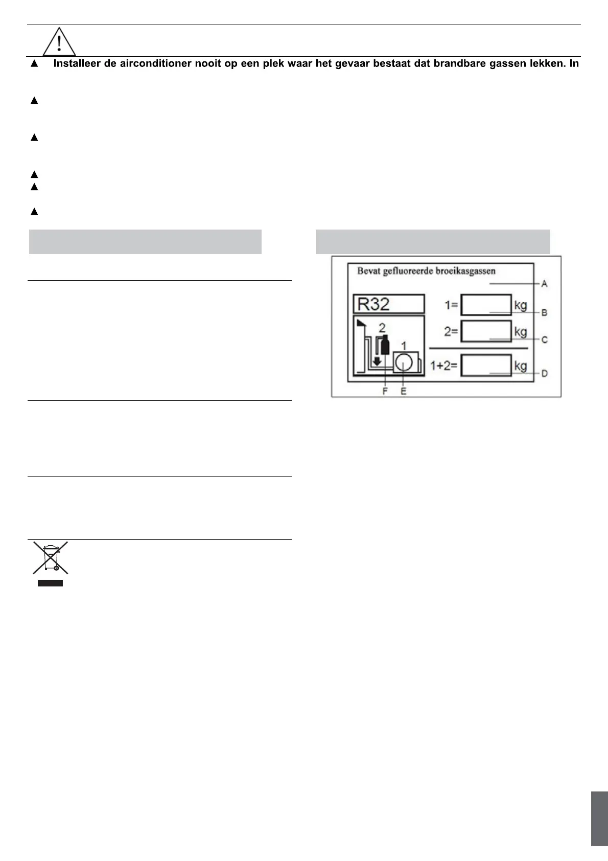 het geval van een gaslekkage kan opeenhoping van gas in de buurt van de airconditioner brand