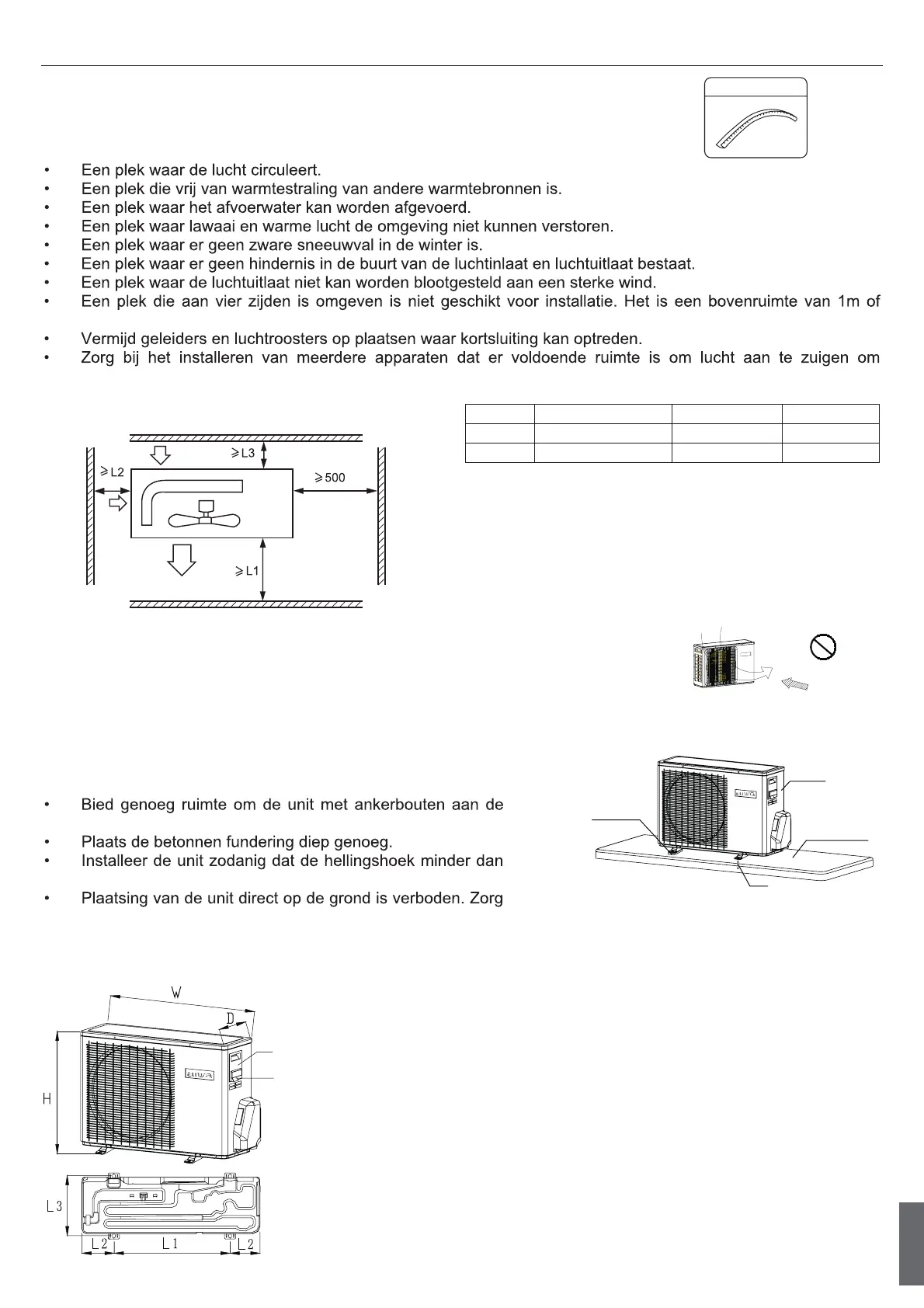 Selecteer een installatie plek die aan de volgende voorwaarden voldoet en waarmee