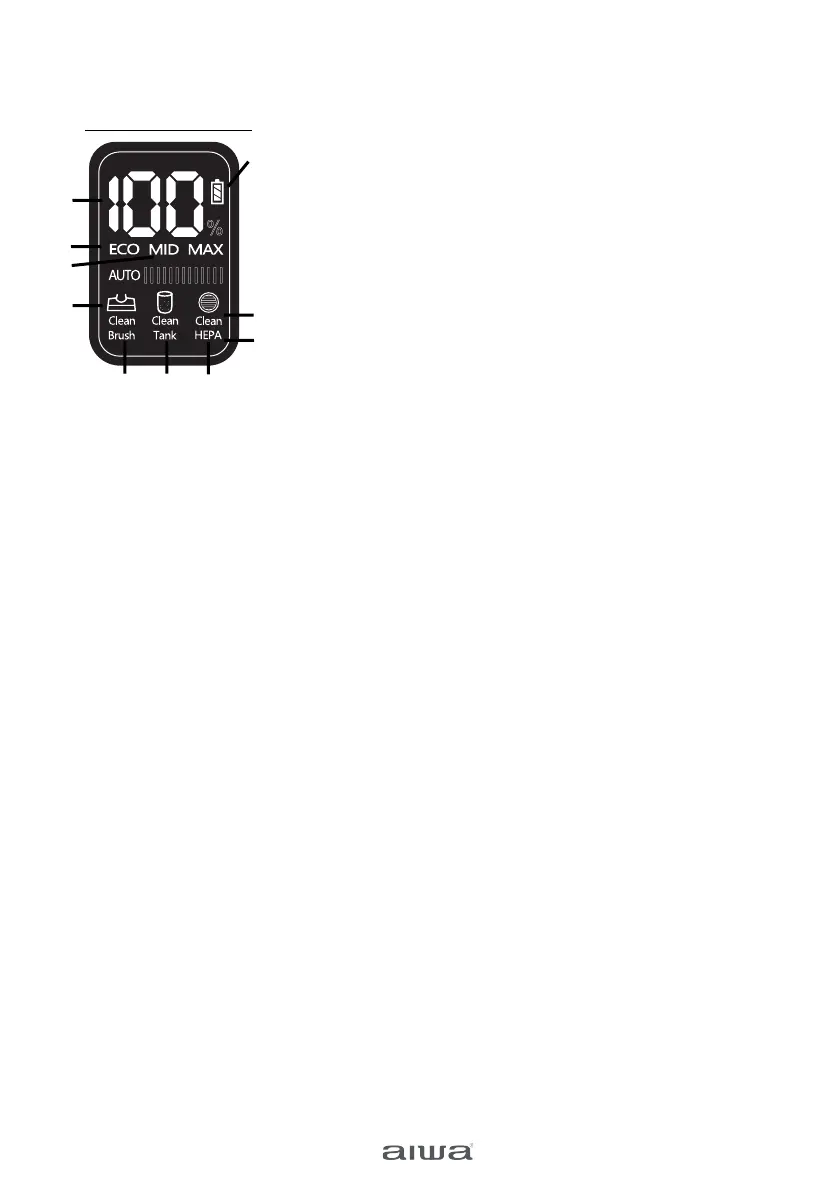 NL- A - Batterij-indicator B - Maximale zuigkracht niveau C - Visuele vermogen indi-