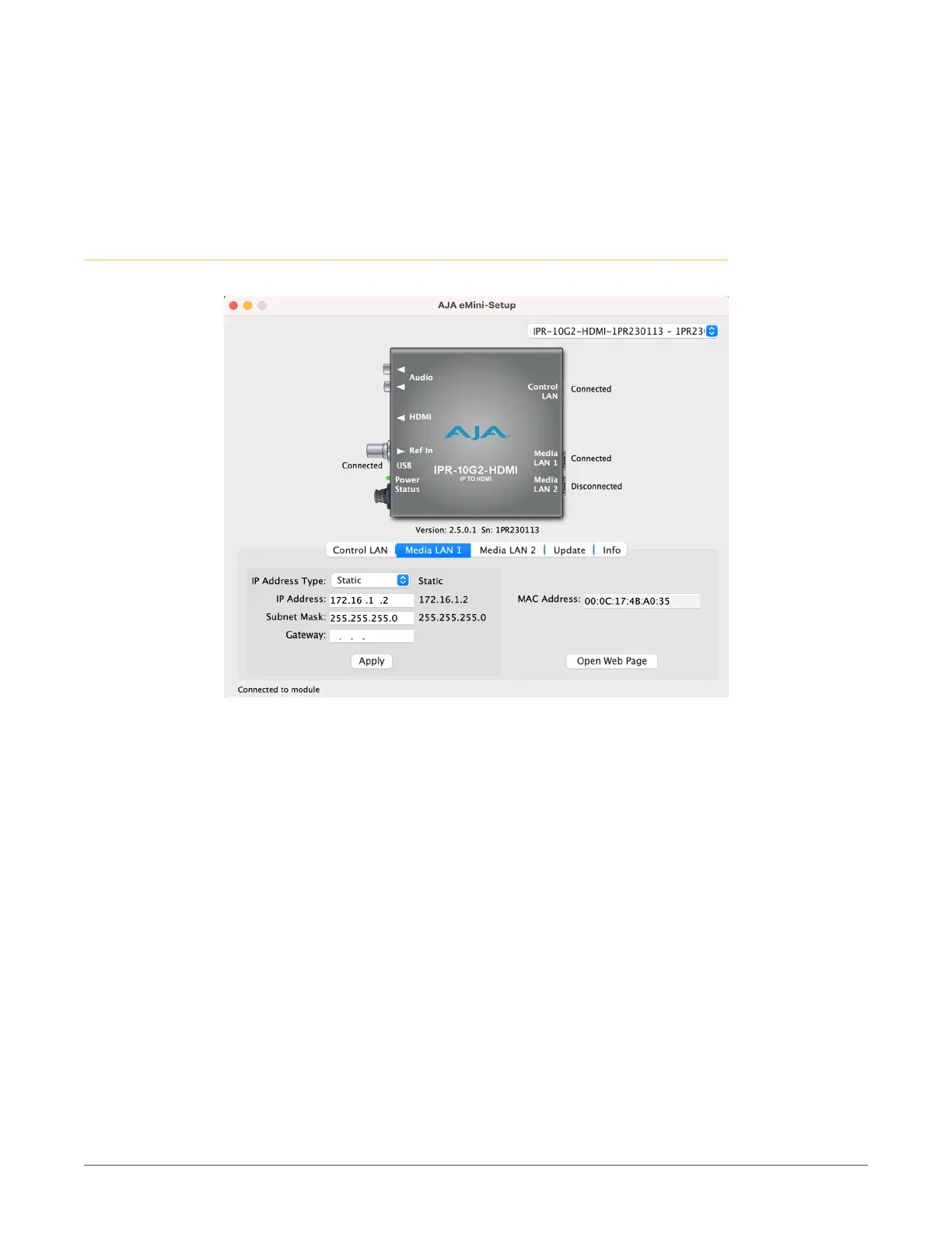 IPTR-10G2-Series Mini-Converters SMPTE 2110 IP Tx/Rx v2.5r1 23 www.aja.com