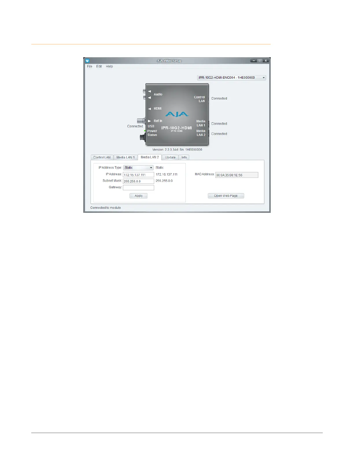 10 GigE IP Mini-Converters SMPTE 2110 IP Transmit/Receive v2.5 24 www.aja.com