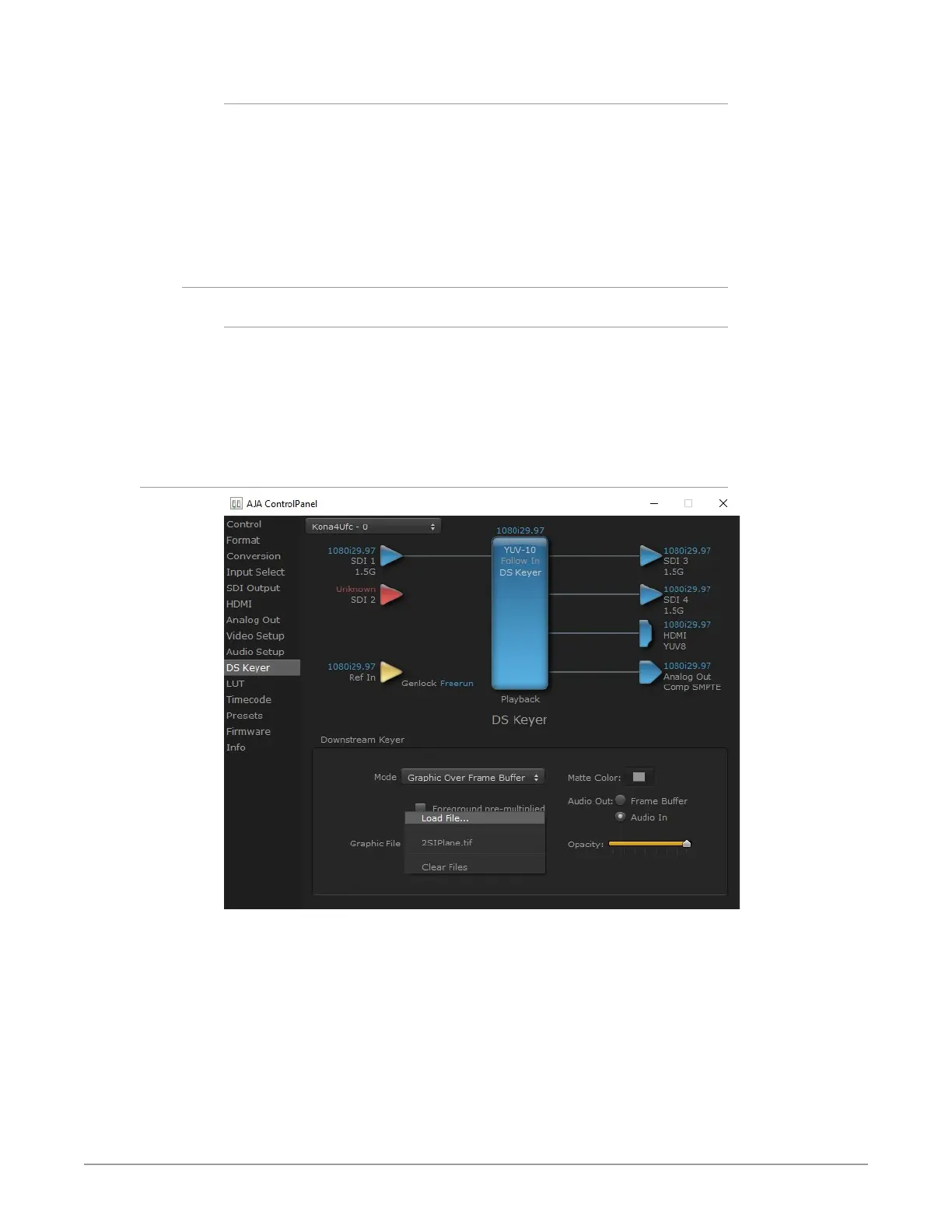 channel (PhotoShop etc.). Downstream keyer operation requires Control Panel