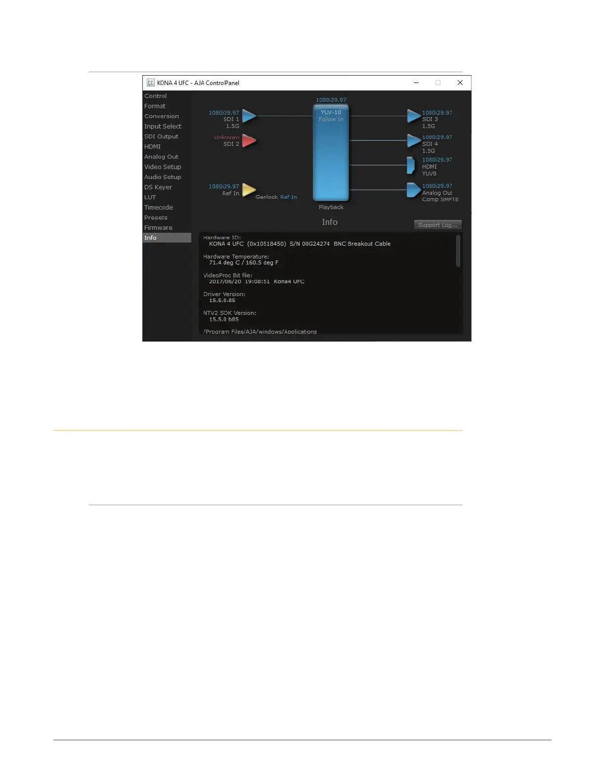 This section describes the AJA Control Panel operations specific to KONA 4 and