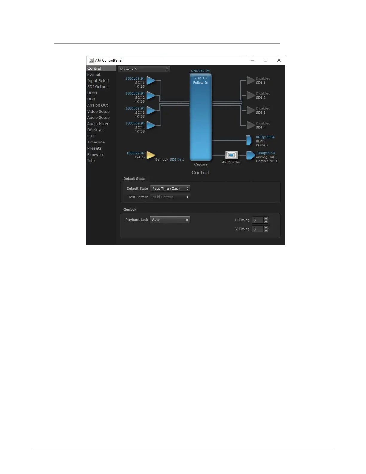Figure 35. Control Screen with UltraHD 4 Link Input (KONA 4)
