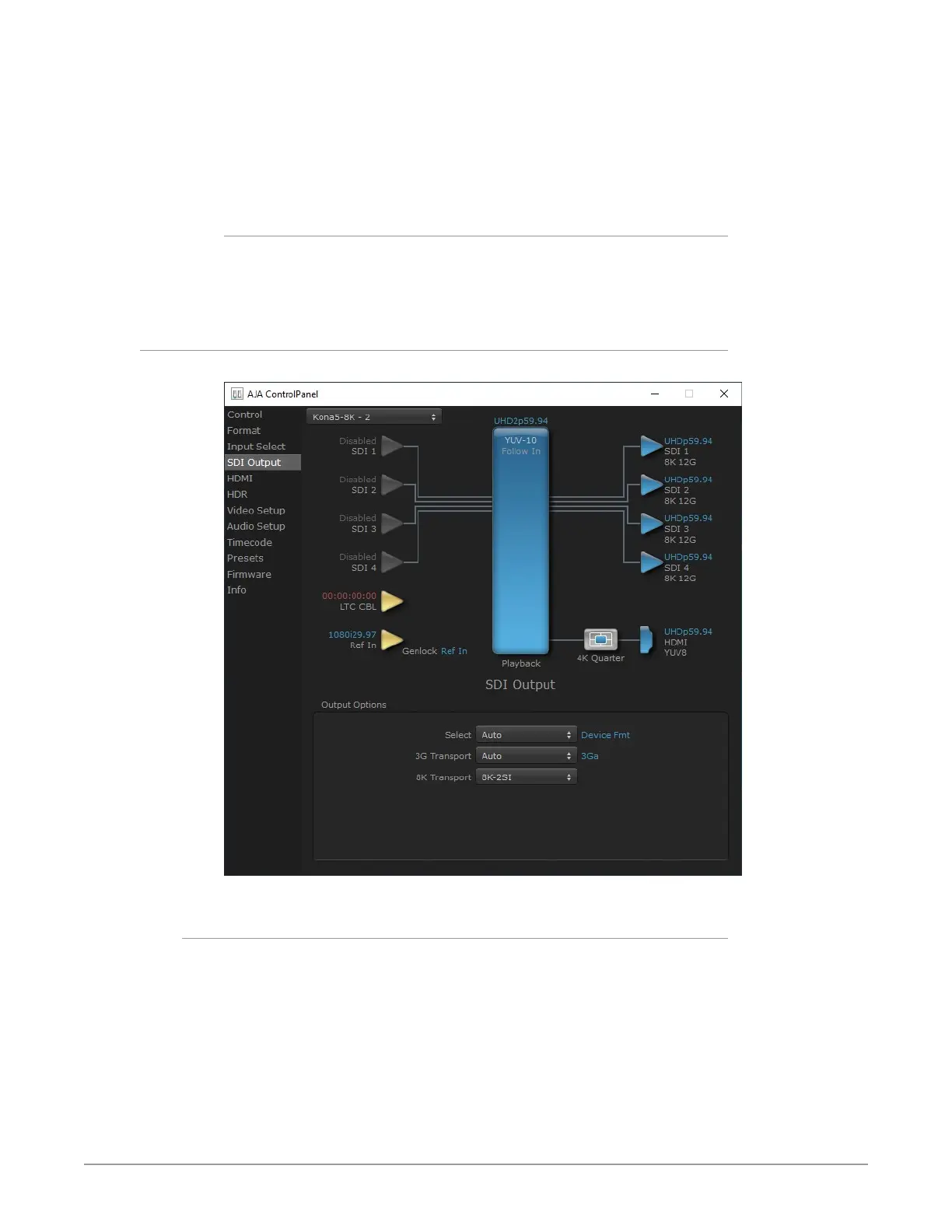 Figure 42. AJA Control Panel, KONA 5 SDI Output Screen in 8K Mode