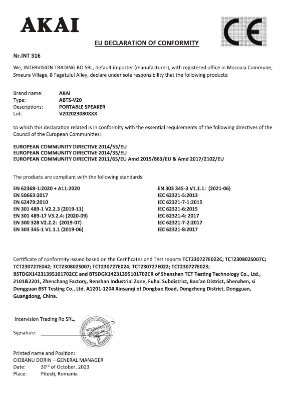 Akai ABTS-V20 handleiding