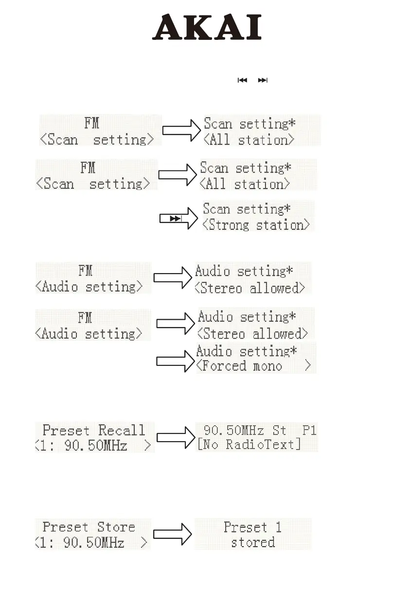 In FM mode, press MENU to enter the FM menu, then press or to select [Scan setting], then press