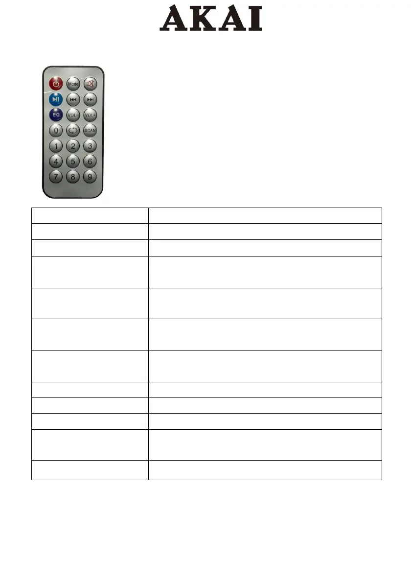 12. 0-9Number buttons Press to select the number of USB/SD track directly