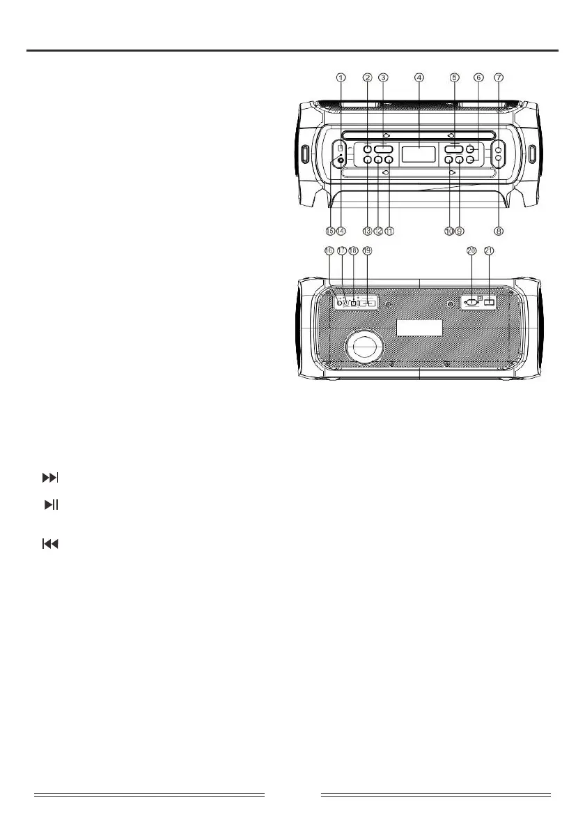 12. : USB/BT bemeneti üzemmódban: Nyomja meg egy zeneszám lejátszásához/megnyitásához. FM