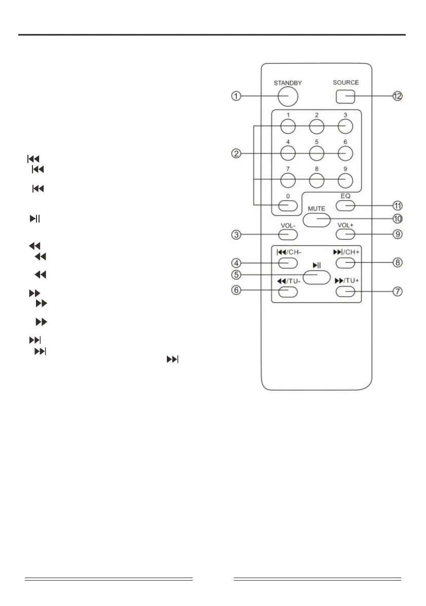 5. : Lejátszás/szünet USB/BT módban. FM módban