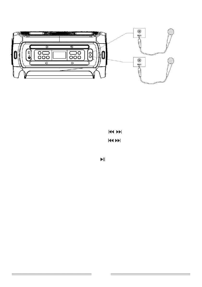 Connect dynamic microphone to 1/4" input. To adjust Mic volume, press EFFECT button once, display will read
