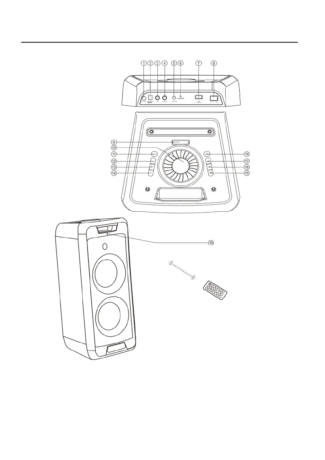 Забележка: Дистанционният приемник е разположен в горната част на предния панел на тонколоната