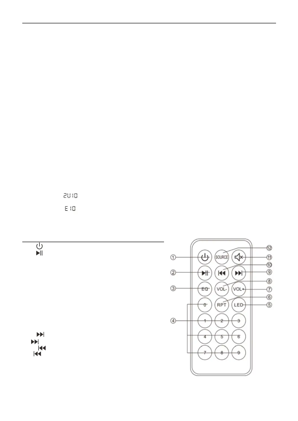 12. SOURCE: Stiskněte abyste změnili zdroj a vyberete si mezi USB, BT, FM, LINE