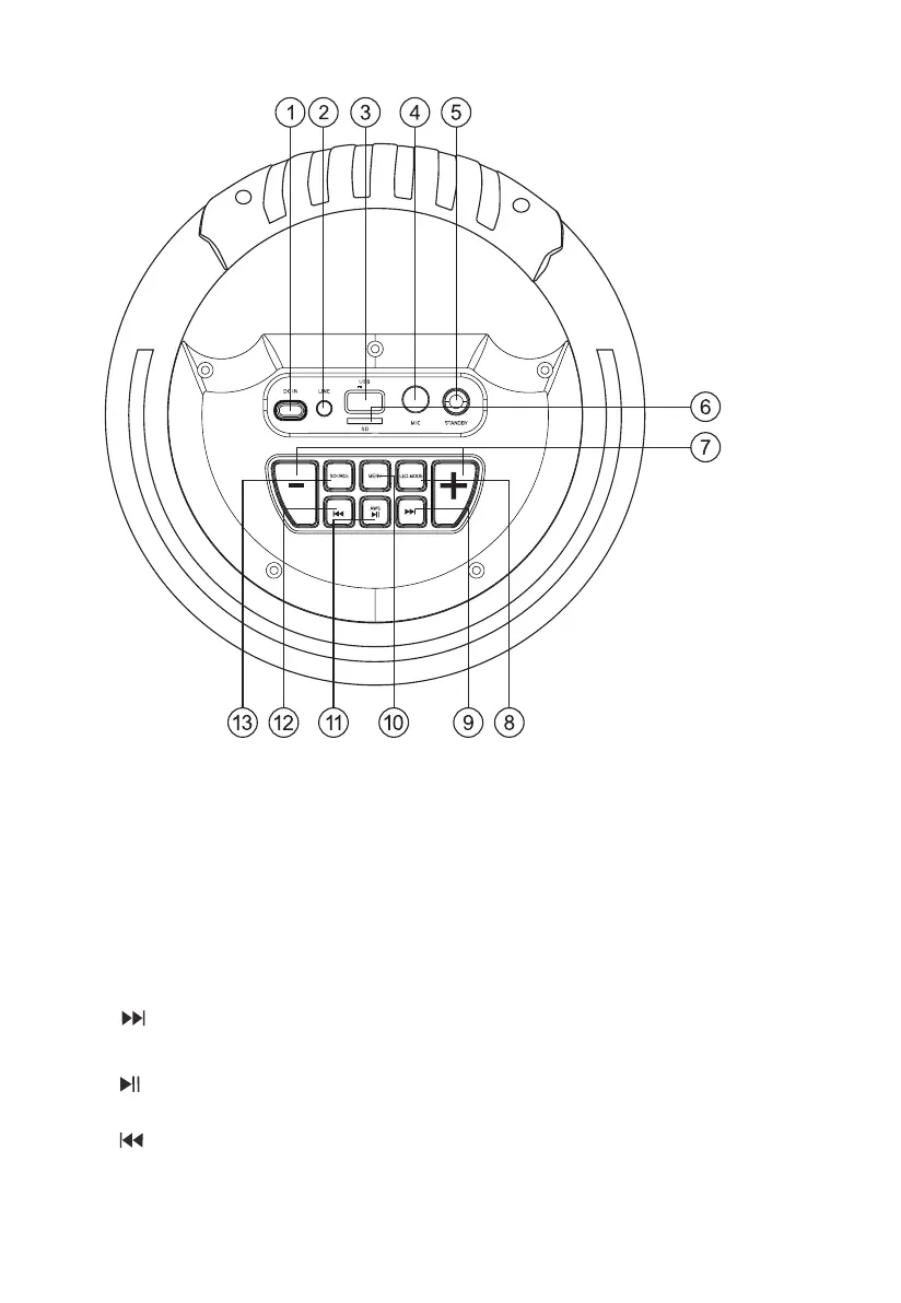 12. : Натиснете този клавиш, за да преминете към предишната песен в режими USB/BT.