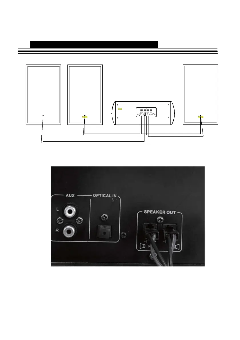 Моля, свържете усилвателя с кабелите на високоговорителите.