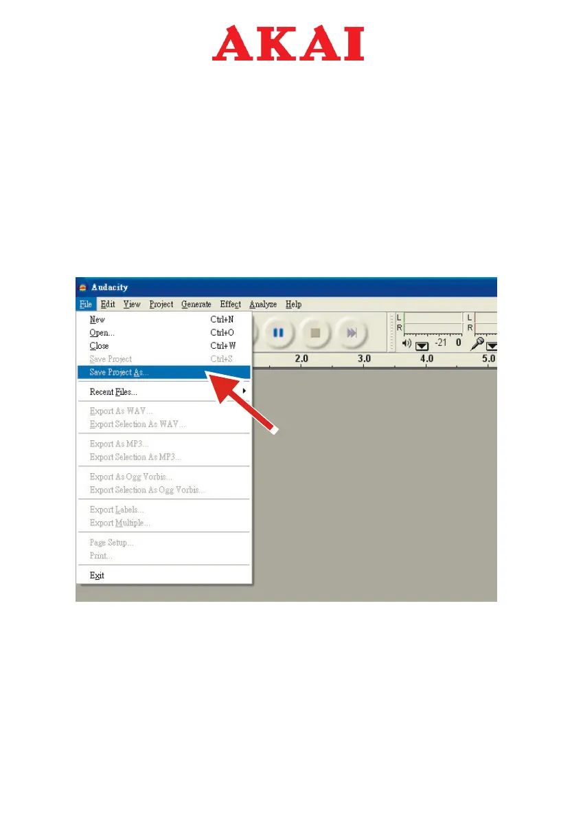 Ve složce Audacity tedy vyberte možnost Uložit projekt jako a zvolte