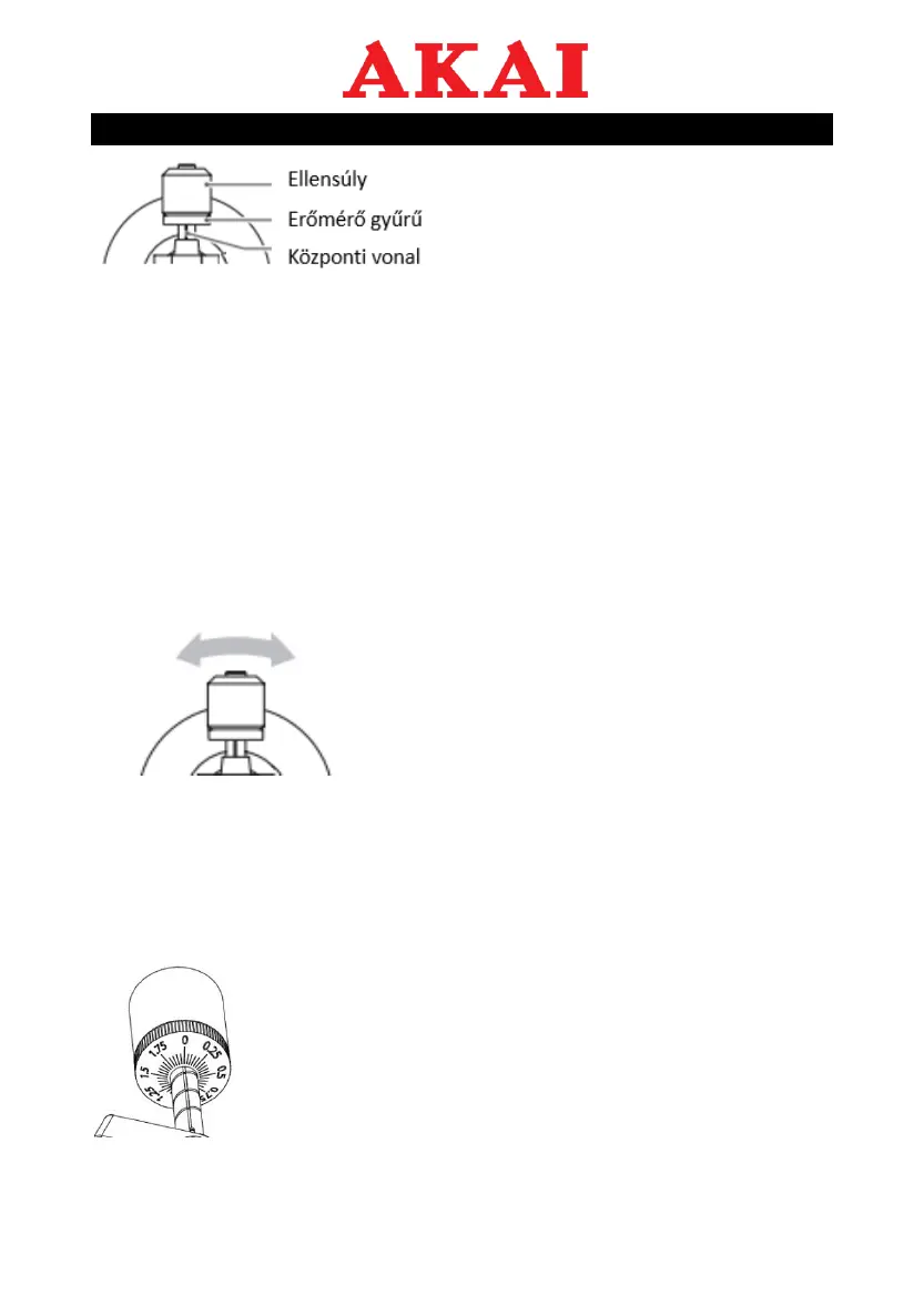 - Óvatosan nyomja és forgassa el a kar hátulján lévő ellensúlyt (a skála a gép