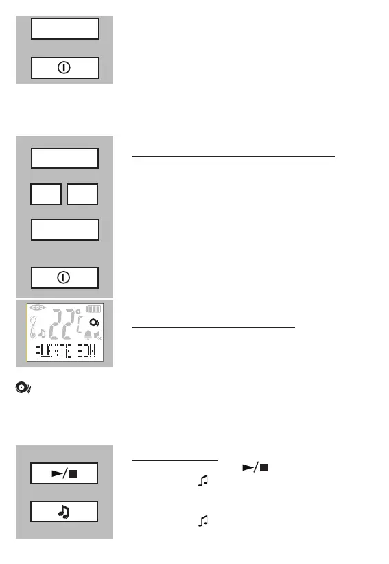 si une alarme est activée le mot [ ALERTE SON ] d’allume, le symbole