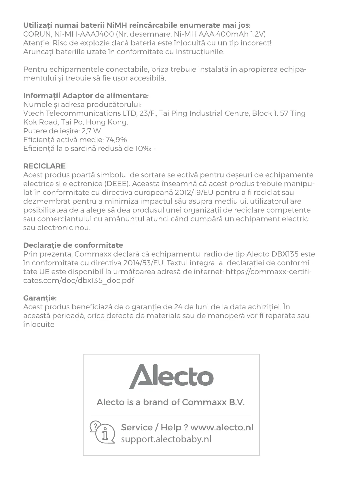 Bekijk gratis de handleiding van Alecto DBX135, stel vragen en lees de antwoorden op veelvoorkomende problemen, of gebruik onze assistent om sneller informatie in de handleiding te vinden of uitleg te krijgen over specifieke functies.
