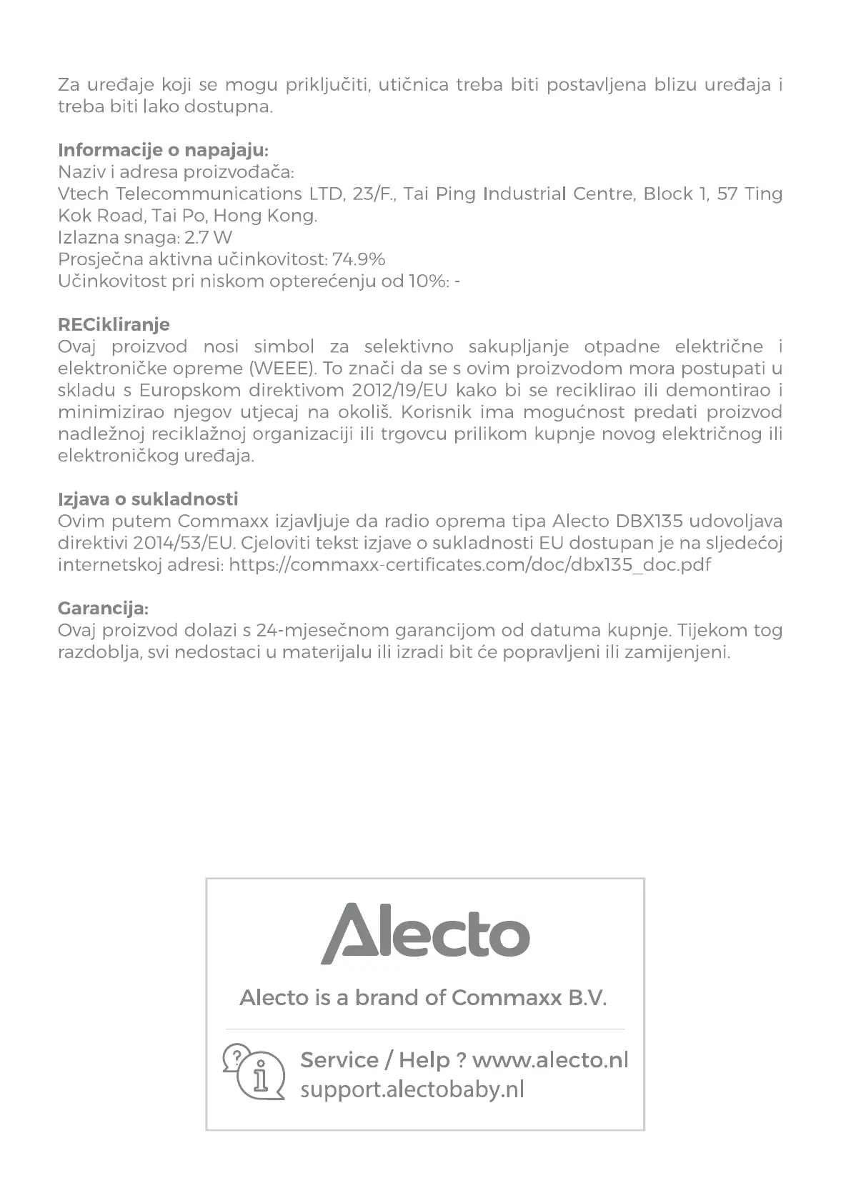 Bekijk gratis de handleiding van Alecto DBX135, stel vragen en lees de antwoorden op veelvoorkomende problemen, of gebruik onze assistent om sneller informatie in de handleiding te vinden of uitleg te krijgen over specifieke functies.
