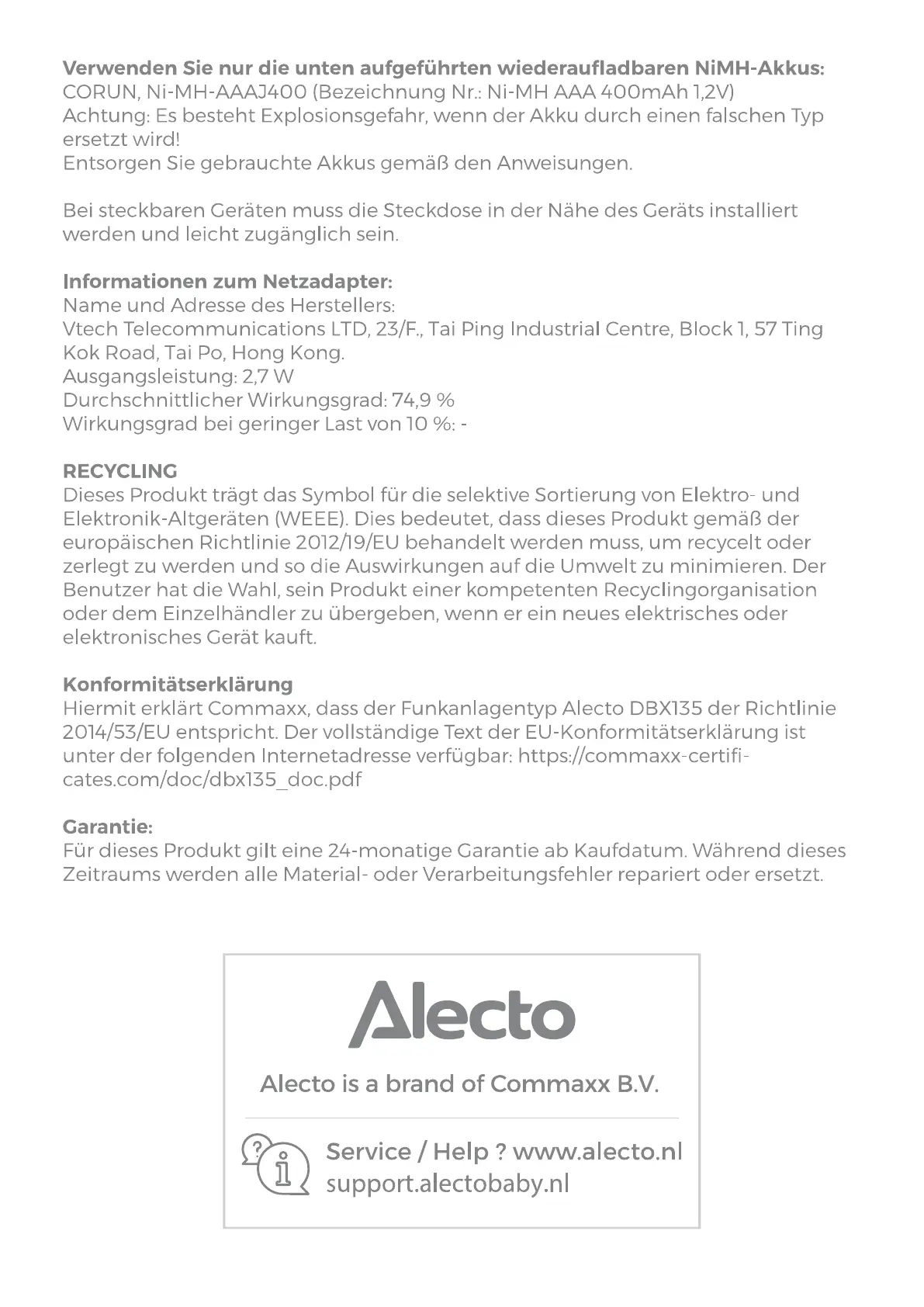 Bekijk gratis de handleiding van Alecto DBX135, stel vragen en lees de antwoorden op veelvoorkomende problemen, of gebruik onze assistent om sneller informatie in de handleiding te vinden of uitleg te krijgen over specifieke functies.