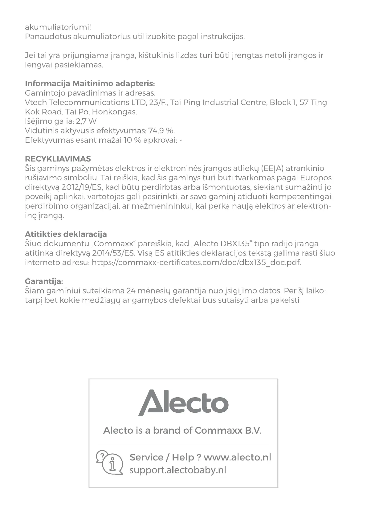 Bekijk gratis de handleiding van Alecto DBX135, stel vragen en lees de antwoorden op veelvoorkomende problemen, of gebruik onze assistent om sneller informatie in de handleiding te vinden of uitleg te krijgen over specifieke functies.