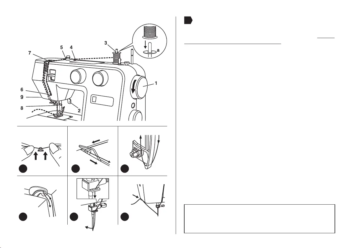 - Coloque el hilo y el portacarretes de fieltro (a) en el